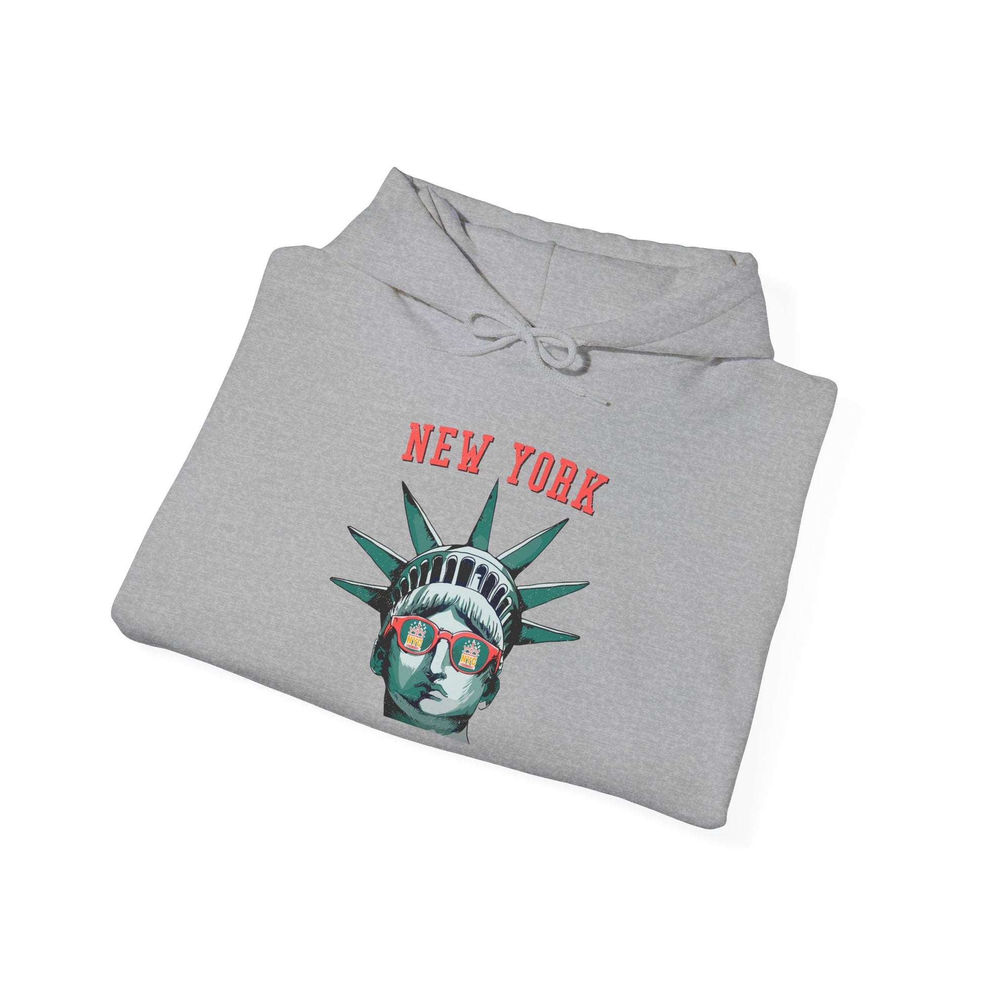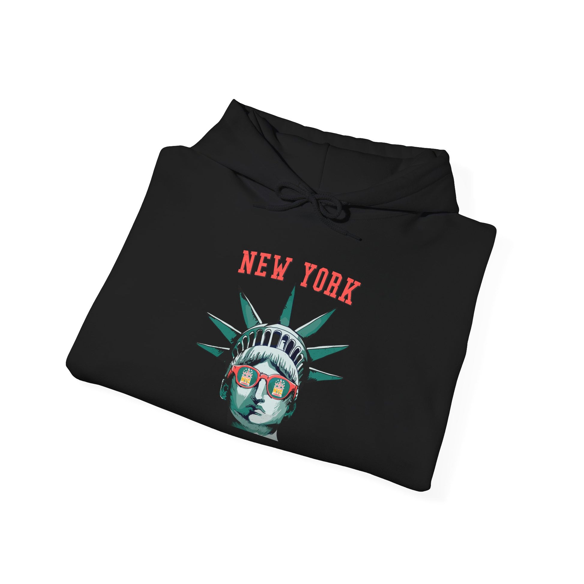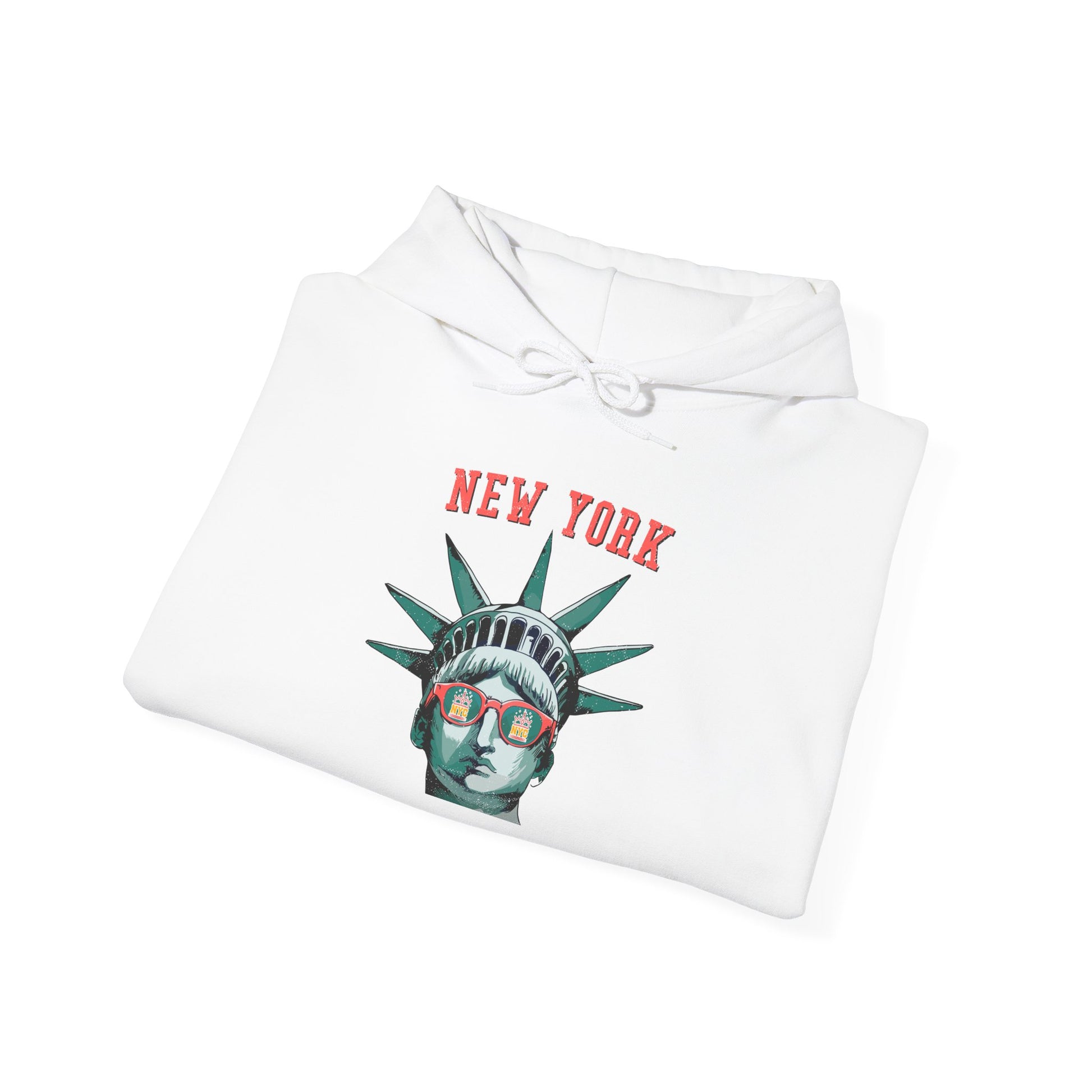 Let Lady Liberty guide you into the heart of New York City with this stylish and iconic hoodie. Featuring a bold graphic of the Statue of Liberty wearing trendy sunglasses, with the New York skyline reflected in the lenses, this tee is perfect for anyone who loves the city that never sleeps.